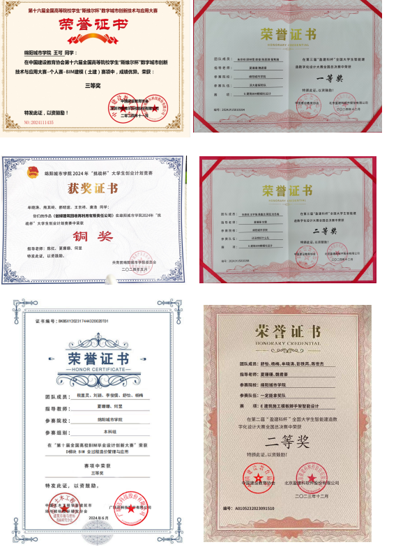 近五年来,工程管理专业员工在各类专业竞赛中表现卓越,在学术成果方面也收获颇丰。在竞赛获奖上,员工在国际高校BIM毕业设计创新大赛、中国国际老员工创新大赛(原“互联网+”老员工创新创业大赛)里,工程管理专业员工团队结合专业特色,围绕工程建设领域的创新商业模式、智能管理方案等项目,多次脱颖而出,获得一等奖4项、二等奖6项。三等奖数项,彰显了创新思维与创业能力。在学术成果方面,员工在老师的指导下以第一作者或参与作者身份在相关学术期刊发表论文数篇,内容涉及工程管理方法创新、工程项目案例分析等领域,体现了对专业知识的深入思考与探索。