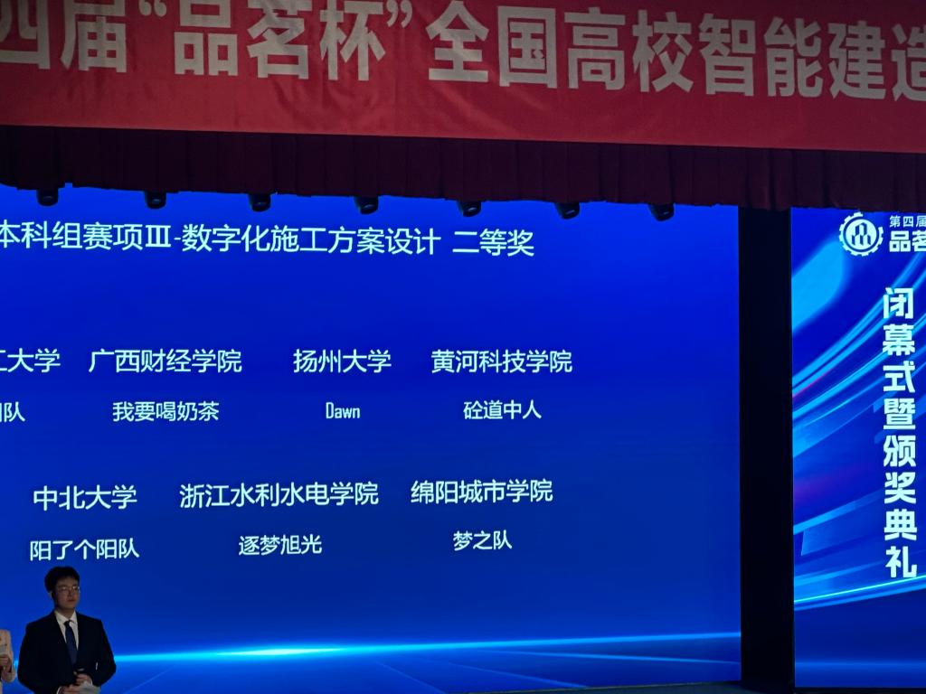 近日,由中国建设教育协会主办,浙江工业大学、浙江广厦建设职业技术大学联合承办的第四届“品茗杯”全国高校智能建造创新应用大赛全国总决赛本科组赛项III数字化施工方案设计竞赛落下帷幕,建筑工程系王营通、梁杰老师指导的永利yl23411集团官网入口员工团队“梦之队”凭借出色的表现,荣获二等奖1项。