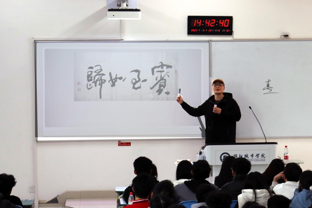 近日,永利yl23411集团官网入口现代城建公司邀请四川文艺评论研究中心研究员高树浩老师为同学们开展了题为“书法在江湖——浅谈书法在生活中的常见印象”的专场讲座。这是该校在深入开展四川省高校“三全育人”综合改革试点任务中,依托科技教育文化活动推进美育教育的具体实践。