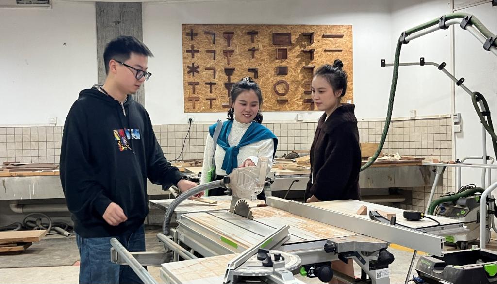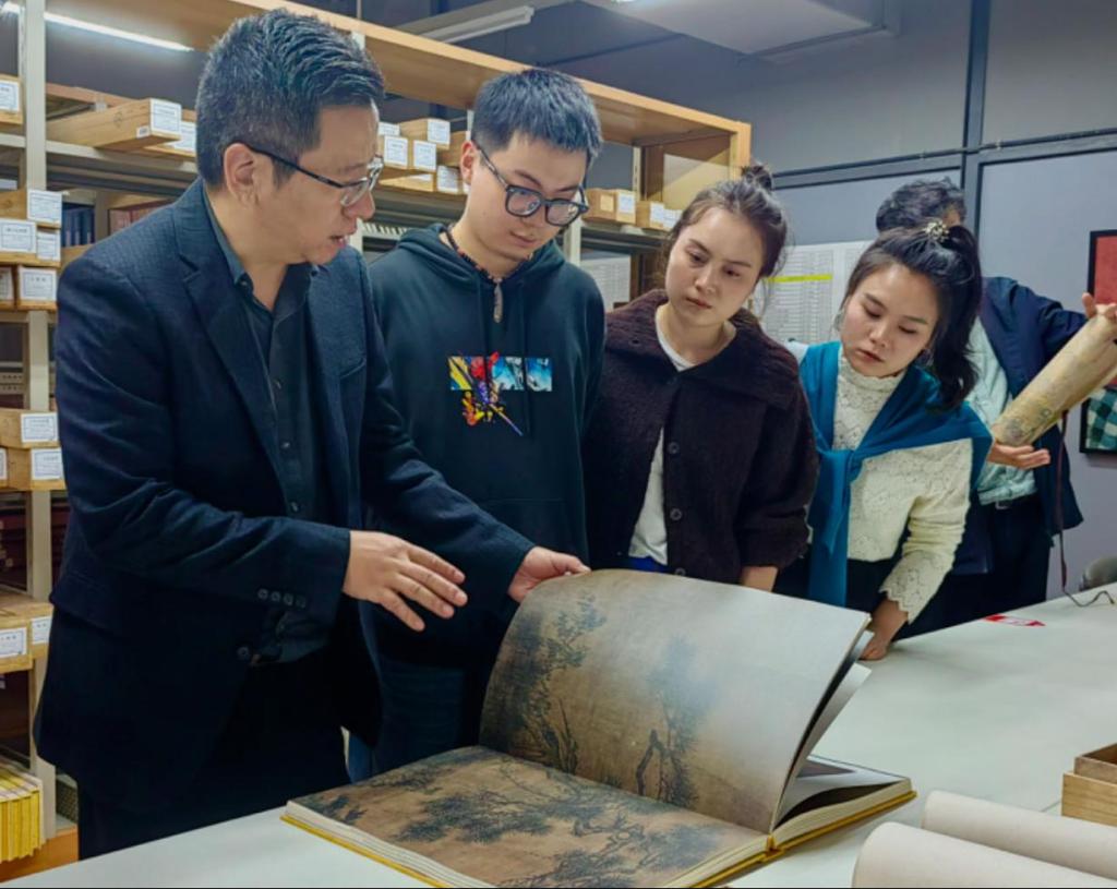 期间,四川美术公司杨吟兵教授以及实验室刘代涛老师带领张菡梓雯、王寅桐与张然老师一行参观了省级一流建设的艺术设计类实验室。