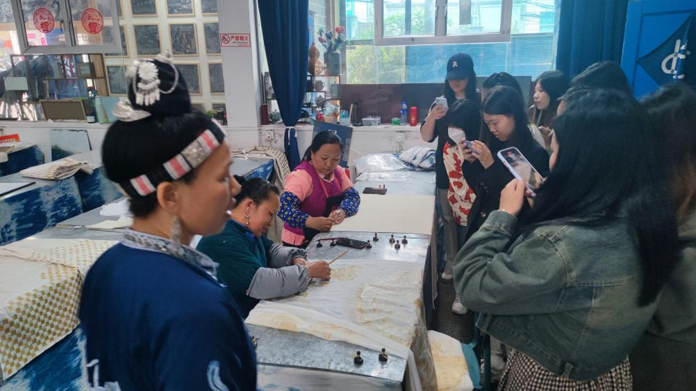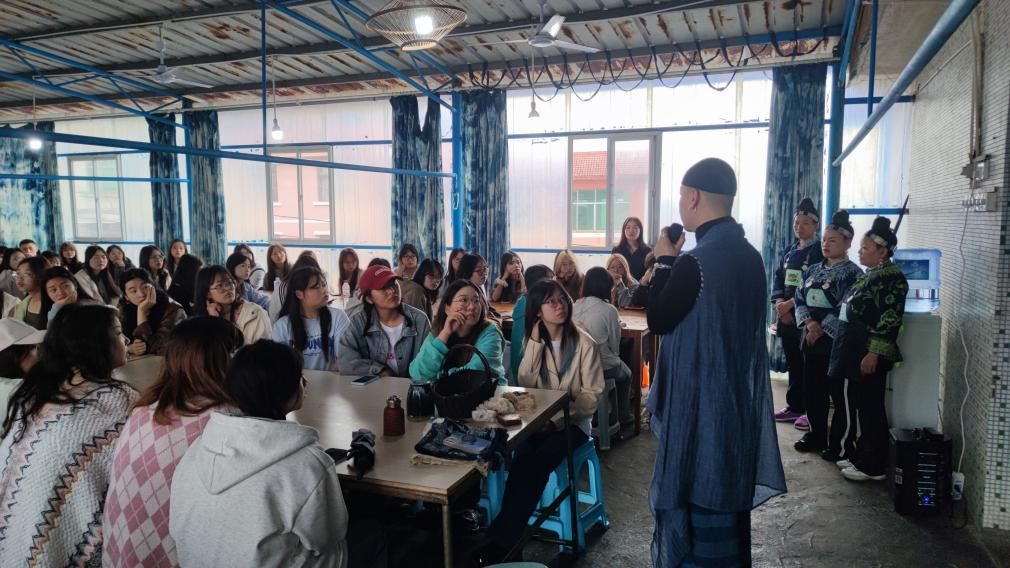 5月6日至7日,艺术设计学专业师生前往贵州进行采风实践活动,深入体验贵州丰富的民俗文化和传统手工艺,进一步将民族文化转化为设计灵感。在镇远古镇,师生们一同探寻侗族文化的独特魅力。在侗族文化体验中,对蜡染和北侗刺绣这两项非物质文化遗产进行深入的学习与了解,亲手体验蜡染的制作过程,并观摩了刺绣师傅的精湛技艺。随后师生们参加了由西江千户苗寨文化研究院举办的“设计赋能千户苗寨文化发展讲座”,与专家学者共同探讨如何通过设计深层次地发掘和传承苗寨文化。还参观了苗族银饰制作工坊、苗族刺绣坊等,与当地苗族居民深入交流,了解苗族人民的生活习俗和文化传承方式。最后师生们在朗德上寨体验当地的民俗风情,深入学习非遗文化——扎染技艺。通过这次活动,师生们不仅提高了设计能力和文化素养,还深刻认识到了将传统文化与现代设计相结合的重要性。