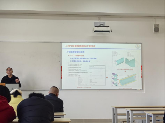 针对油气管道力学理论,王汝恒教授从力学基本原理出发,深入剖析了油气管道在内部压力、外部荷载、温度变化等多重因素作用下的力学响应机制。其深入浅出的讲解方式,使得在场师生对油气管道的力学特性有了更为深刻地认识与理解。