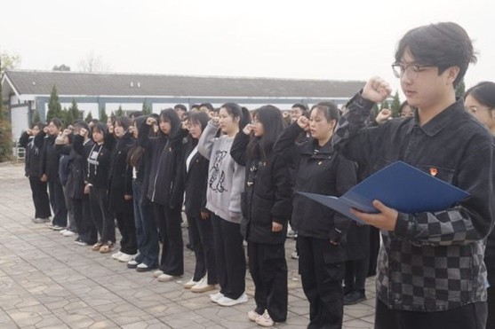 在深沉的哀乐声中,全体人员垂首肃立、默哀三分钟,以无声的敬意追思用生命铸就山河无恙的革命先烈。随后,党员代表余浩结合专业实践,讲述新时代青年对红色精神的理解:“先烈以血肉之躯照亮民族前路,吾辈当以专业报国书写时代答卷!”在党委书记领誓下,全体党员高举右拳重温入党誓词,铿锵誓言回荡陵园,彰显坚守初心、勇担使命的坚定信念