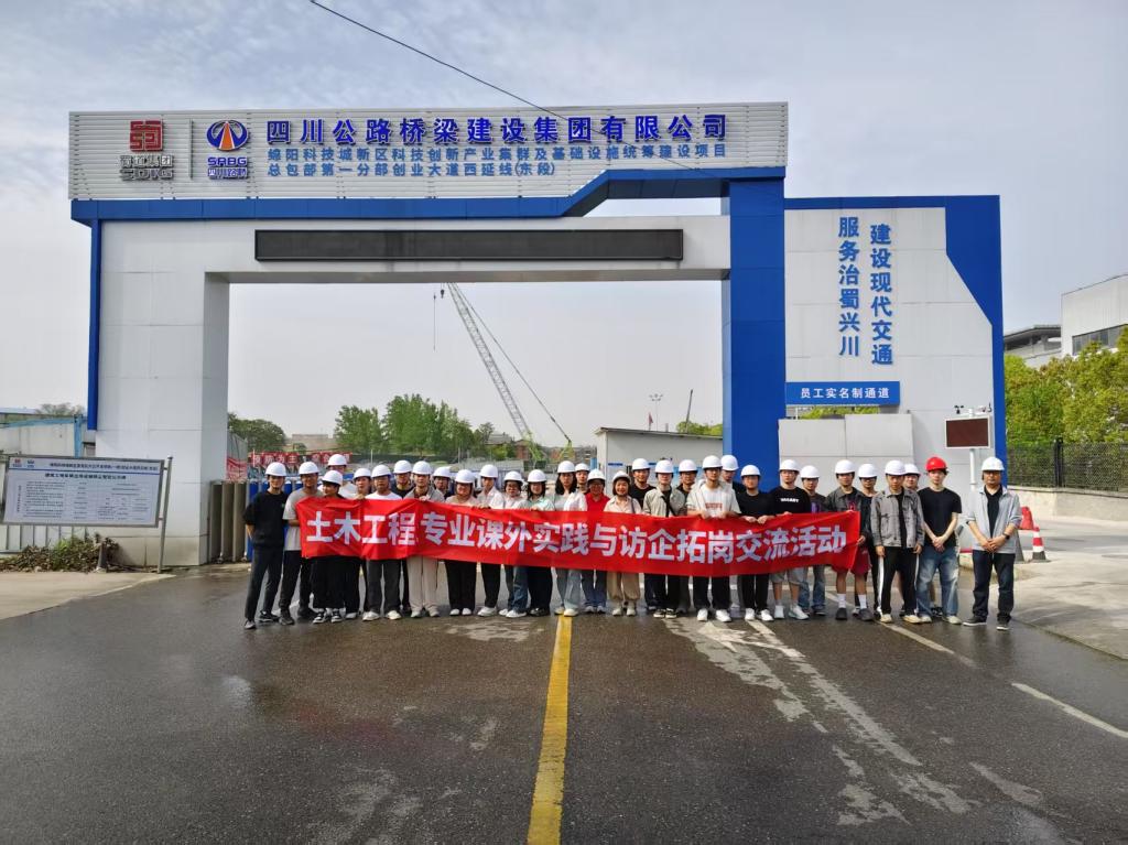 为深化产教融合,培育应用型人才,通过实地观摩重点工程、对话行业专家,推动理论教学与工程实践无缝衔接,搭建员工就业“直通桥梁”。4月16日,公司土木工程系组织了一场课程实践与访企拓岗活动。此次活动由艾建杰、欧志霖、冯晓新三位专业老师带领土木工程专业2301班全体员工,前往绵阳科技城新区直管区片区开发项目(一期)创业大道西沿线(东段)开展。
