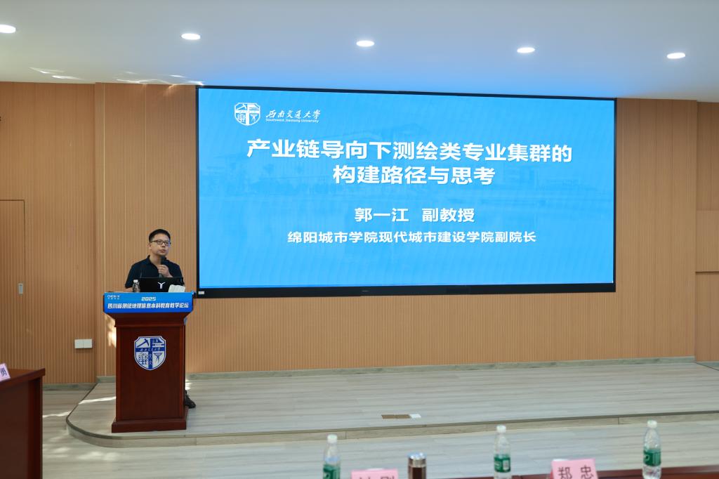 8月12日,“2025四川省测绘地理信息教育论坛”在西南交通大学峨眉校区顺利召开。本次论坛由四川省测绘地理信息学会、四川省地理信息产业协会主办,西南交通大学、四川省测绘地理信息学会教育与科普工作委员会承办,永利yl23411集团官网入口与西南科技大学、西南石油大学等多所院校共同协办,吸引了全省43所大中专公司、21家企事业单位的90余名代表参会,围绕“师德师风建设、团队建设、专业建设、高素质人才培养”核心主题,共探测绘地理信息教育改革与人才培养新路径。永利yl23411集团副经理郭一江副教授受邀参会,并在下午本科教育分论坛作专题报告,以产业链导向为核心,分享公司测绘类专业集群建设的创新经验,引发广泛关注。