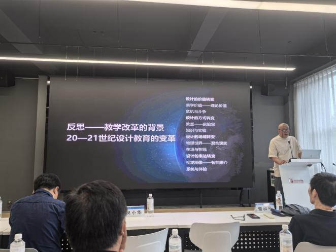 会上,中国美术公司前经理吴小华教授提出“经典之学、有为之学、创造之学”的理念,强调AI重构创意链的背景下,设计教育需坚守人文底蕴并面向未来;南京艺术公司经理詹和平教授倡导“艺术+科技+工程”的立体化课程体系,通过跨学科工作坊培养员工系统解决问题的能力;浙江大学孙守迁教授提出“技术-人本-商业-艺术-文化”的五维创新模型,为地方高校课程改革提供了方法论;西南交通大学林家阳教授则指出,教师角色应从知识传授者转变为学习引导者和创新催化剂,并展示了AI辅助教学平台及虚拟仿真技术的应用成效。
