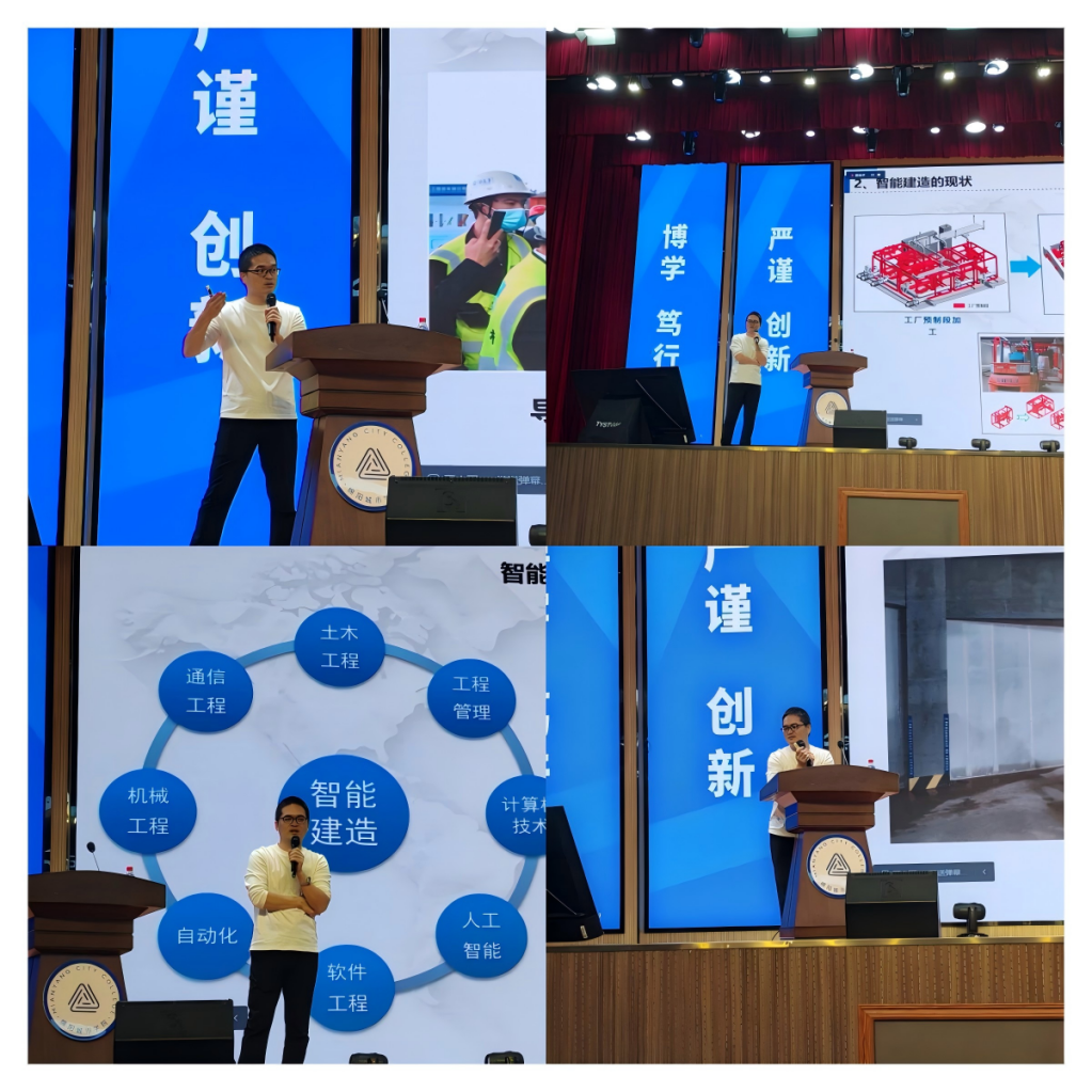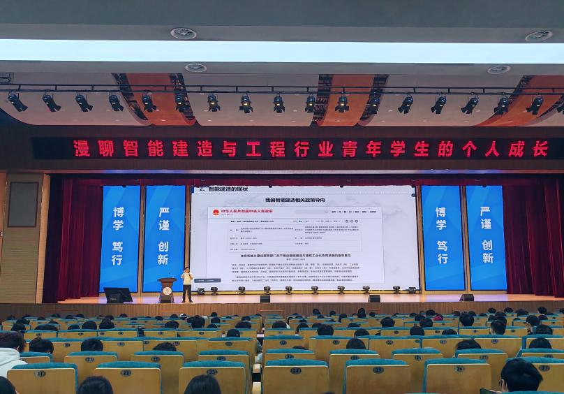 报告中,牛智祥结合企业实践,系统剖析土建行业由自动化向智能化演进的技术瓶颈与突破方向,强调“数据协同、全生命周期管控”才是智能建造的核心要义。他分享了“专业课+数字化能力”双轮驱动的学习方法,建议员工以现场需求为导向,强化编程思维与工程管理协同训练,并逐一解答了关于核心能力构建、科技创业趋势等提问,为师生奉上兼具深度与温度的成长指南。