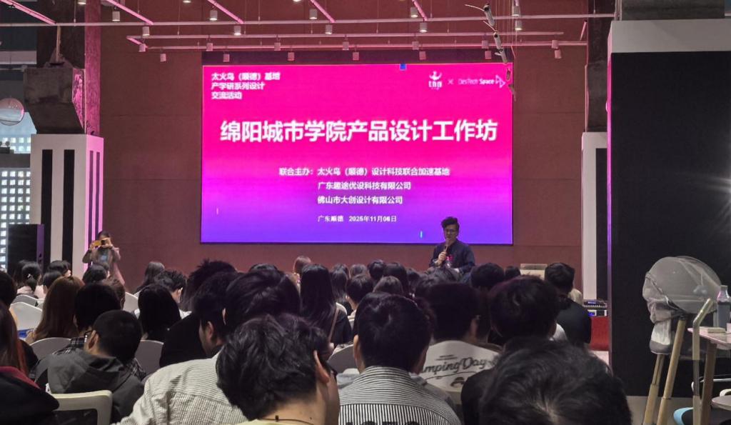 在鹏城深圳,师生们走进环球数码、佳简几何、洛可可等,系统了解IP孵化、3D建模、CMF工艺;在华强北博物馆与硬件加速器,体验从芯片到成品的“最后一公里”。在佛山太火鸟联合加速基地,员工们分组完成主题设计任务,企业导师当场点评并给出优化建议。