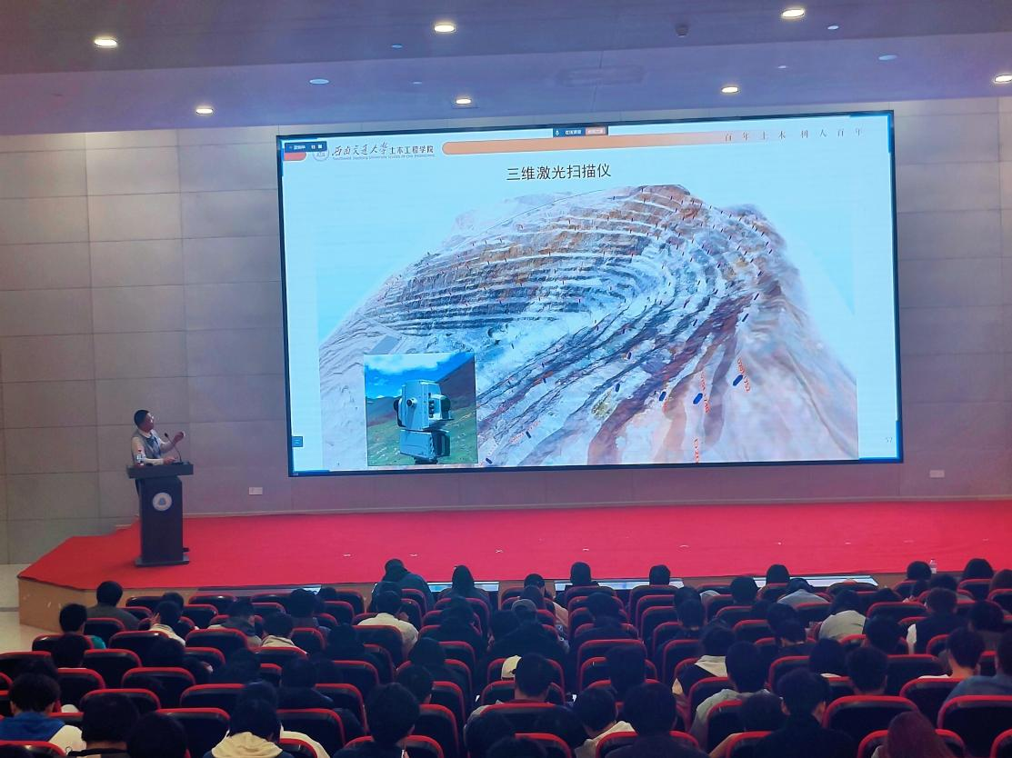 11月14日,绵城致远讲坛暨城建公司"学术交流月"专题活动在安州校区博润楼报告厅顺利举行。活动特邀西南交通大学土木工程公司教授、博士生导师、岩土工程系主任杨涛,作题为《高边坡支挡结构及智能风险防控技术》的学术报告。报告采用"线下主会场+线上直播"双通道形式,吸引土木工程、测绘工程、工程造价、工程管理、交通工程、地理信息科学等六个专业师生共同参与,呈现了一场融合前沿理论与工程实践的学术盛宴。