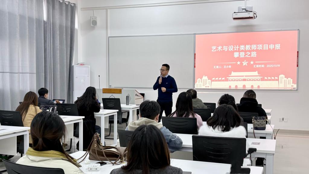 11月19日,西南科技大学数字媒体艺术专业教授、数字文遗与创新设计实验室负责人王小冬博士应邀来校,在公司安州校区为公司教师带来题为《艺术与设计类教师项目申报攀登之路》的学术讲座。讲座采用“理论分享+即时互动+个案诊断”形式,来自各专业的青年教师代表现场参训,气氛热烈。