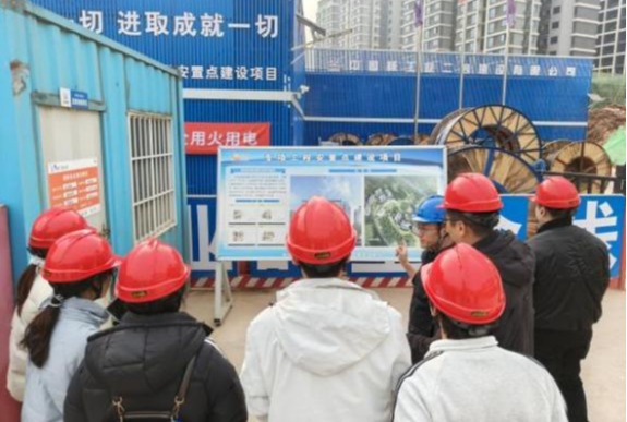 抵达项目现场后,企业专家借助展板与施工图纸,系统介绍游仙安置房项目的建设规模、结构特点、施工重难点及质量安全控制要点,帮助师生建立整体认知。随后,师生佩戴安全帽深入作业面,实地观摩钢筋绑扎、模板支护、混凝土浇筑等关键工序,企业专家结合现场讲解施工流程、技术规范及安全管理措施,并对员工提出的专业问题逐一解答。教师们引导员工将课堂理论与现场实践相结合,深化对核心知识点的理解。
