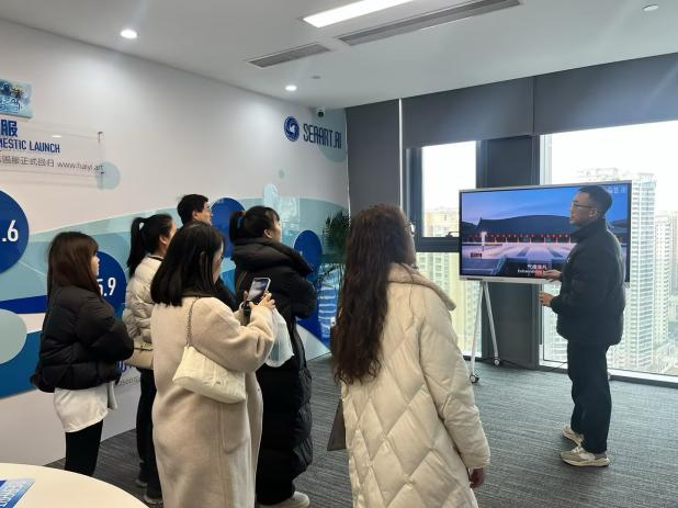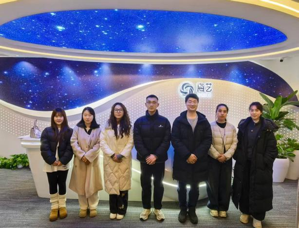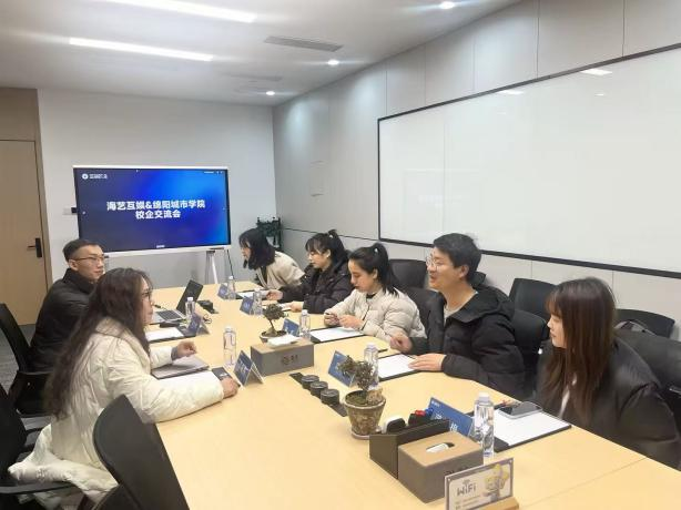 下午,团队抵达成都海艺互娱科技有限公司,考察企业数字内容创作体系与运营模式。技术研发部负责人通过案例演示与技术拆解,生动展示游戏AI技术在场景搭建、角色动画生成等方面前沿应用成果。随后,双方就实习基地共建、校企联合项目开发、团队双向交流等核心议题进行务实洽谈,明确合作方向与推进路径,达成多项共识。